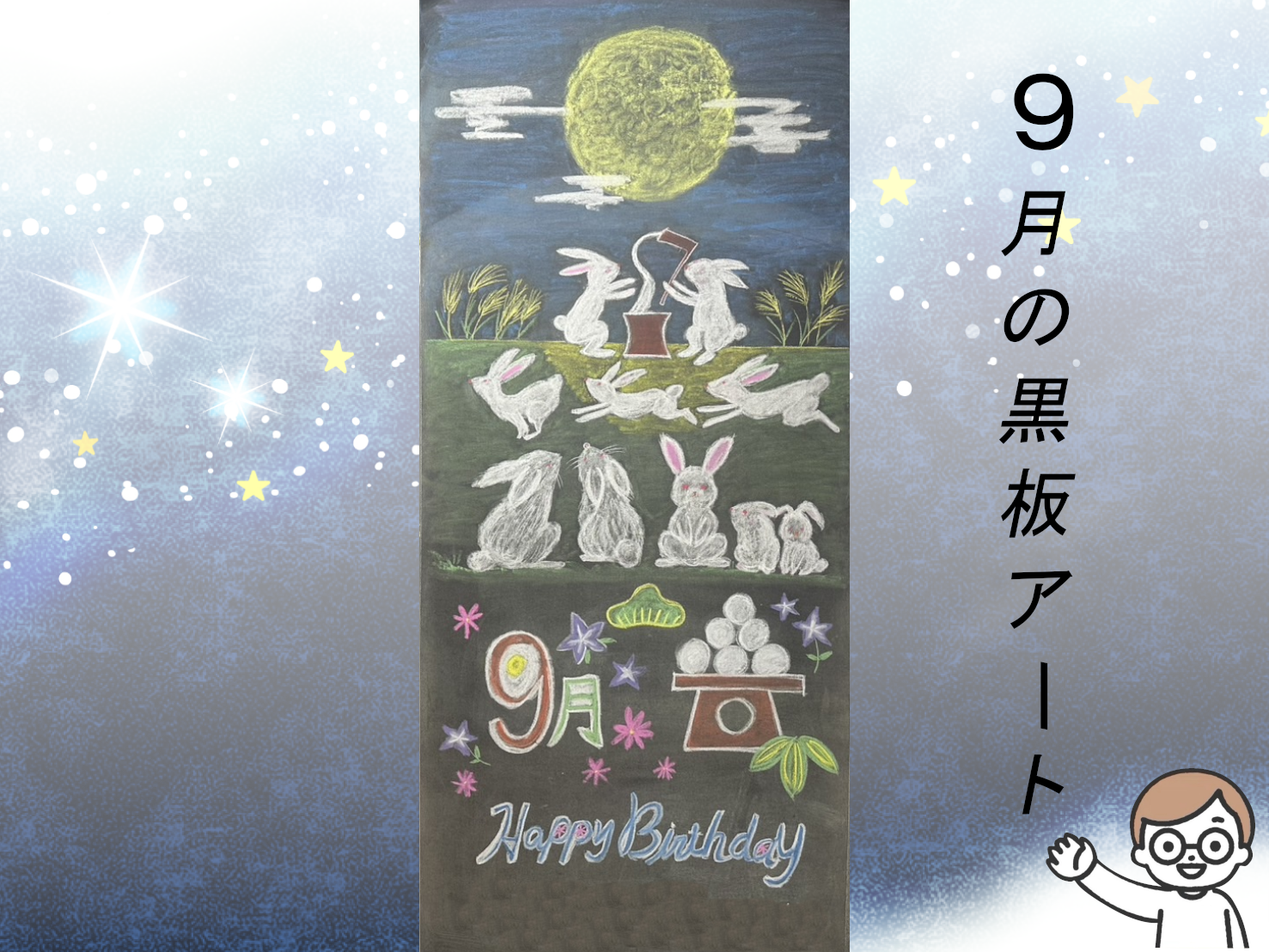 10月には新たな黒板アートに変わりますが、まだお月見はこれから楽しめそうです🐰
