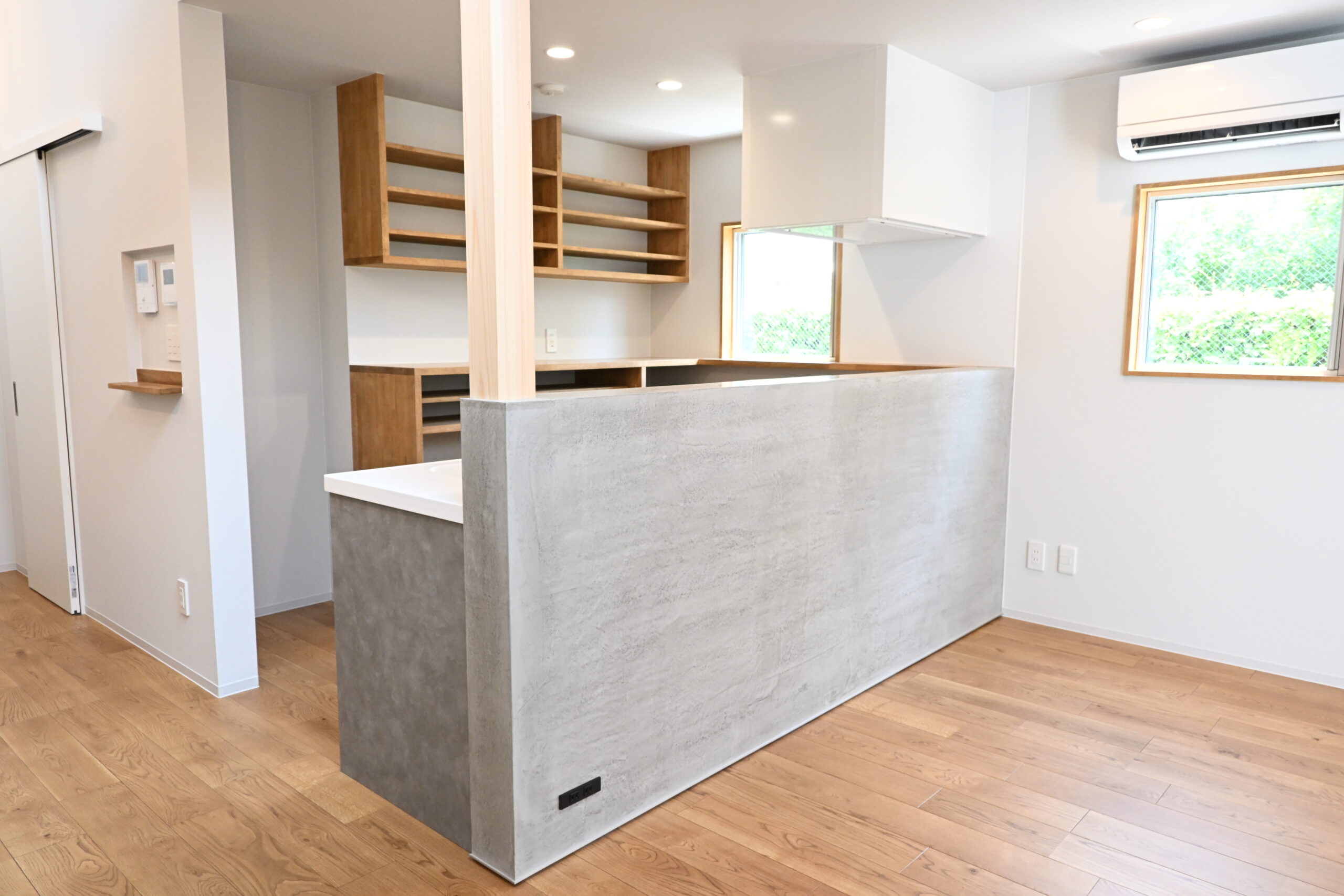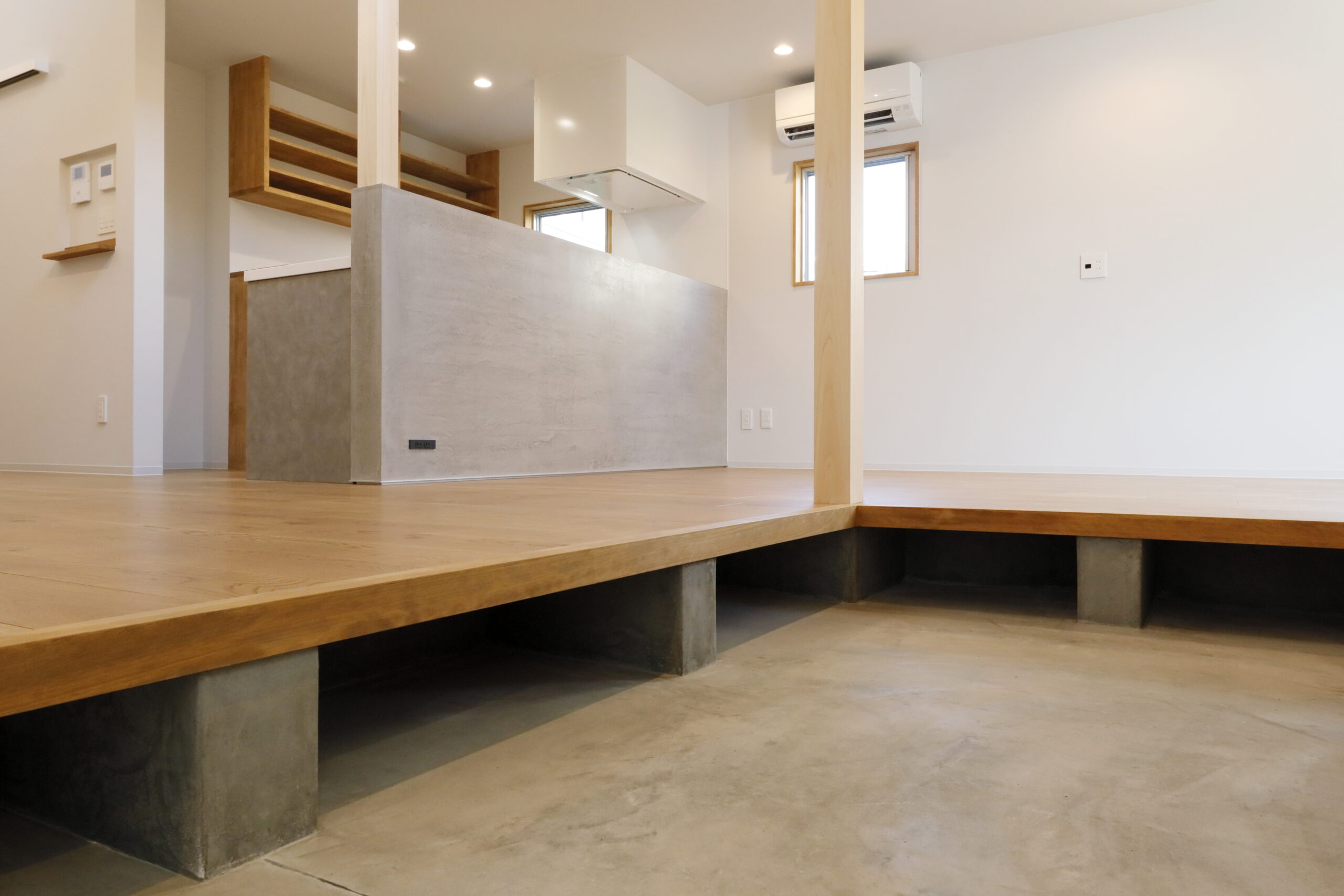 キッチン、洗面、居間、収納等、造作家具を設置し、生活に馴染むこだわりの空間に仕上げています。
