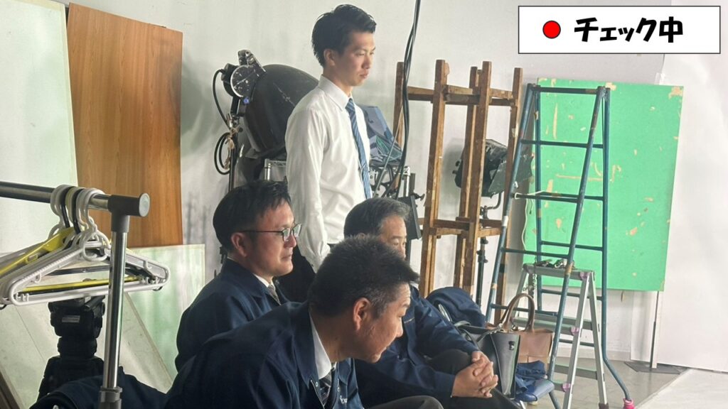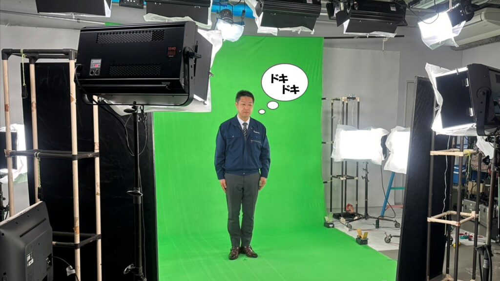 慣れないカメラに緑バックのスタジオに緊張しながら一人ひとりカメラの前に